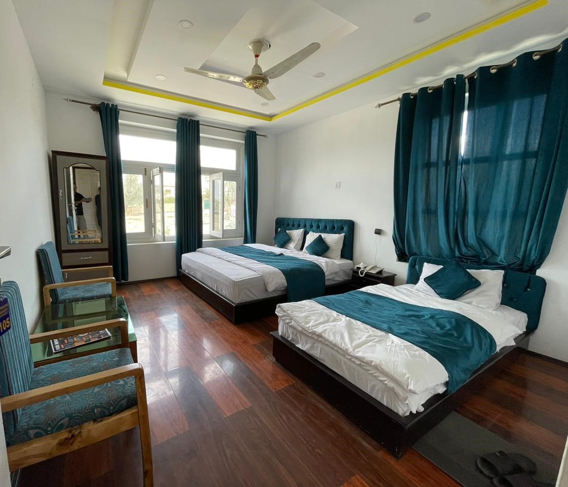 Our Deluxe Room offers a luxurious retreat with modern amenities for a comfortable stay. Relax in plush bedding, enjoy elegant furnishings, and unwind in a spacious, well-appointed bathroom.